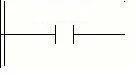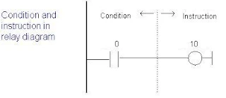 Gambar diatas merupakan contoh dari sebuah diagram tangga di mana relay diaktifkan dalam PLC kontroler ketika sinyal muncul pada baris masukan 0. Pasang garis vertikal disebut kondisi. Setiap kondisi dalam sebuah diagram tangga memiliki nilai ON atau OFF, tergantung pada status bit yang ditugaskan untuk itu. Dalam hal ini, bit ini juga secara fisik hadir sebagai garis masukan (terminal sekrup) ke kontroler PLC. Jika kunci terpasang ke terminal sekrup yang sesuai,