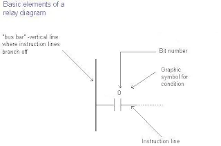 Elemen dasar dari sebuah diagram relay dapat dilihat pada gambar berikut. instruksi Sebagian besar membutuhkan setidaknya satu operan, dan sering lebih dari satu. Operan dapat beberapa lokasi memori, satu bit lokasi memori, atau beberapa nilai-number.In numerik kasus ketika kita ingin memproklamirkan konstan sebagai operand, penunjukan # digunakan di bawah tulisan numerik (untuk compiler untuk tahu itu adalah . konstan dan tidak alamat) Berdasarkan gambar di atas, salah satu harus mencatat bahwa sebuah diagram tangga terdiri dari dua bagian dasar: bagian kiri juga disebut bersyarat, dan bagian kanan yang memiliki instruksi. Ketika kondisi terpenuhi, instruksi dieksekusi, dan itu semua!