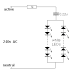 Untuk 50 LED di setiap string, total tegangan karakteristik akan menjadi 180v sehingga tegangan puncak akan menjadi 330V - 180v = 150v. Setiap LED akan melihat kurang dari 7mA puncak selama setengah siklus mereka diterangi (karena tegangan 0.22u adalah 150v dan tegangan ini menentukan arus-arus). 1k resistor akan turun 7v - karena arus RMS 7mA (7mA x 1,000 ohm = 7v). Tidak ada dioda penyearah diperlukan. The LED adalah "rectifier." Sangat cerdas. Anda harus memiliki LED di kedua arah untuk pengisian dan pengosongan kapasitor. Resistor ini disediakan untuk mengambil lonjakan berat arus melalui salah satu rangkaian LED sirkuit jika dinyalakan saat listrik berada di puncak. Hal ini dapat setinggi 330mA jika hanya 1 LED digunakan, sehingga nilai resistor ini harus disesuaikan jika sejumlah kecil LED digunakan. LED di atas mendeteksi arus puncak. The LED dihidupkan dan dimatikan 50 kali per detik dan ini dapat membuat "berkedip" atau "nyala." Untuk mencegah flicker ini, lihat rangkaian DC di bawah ini: