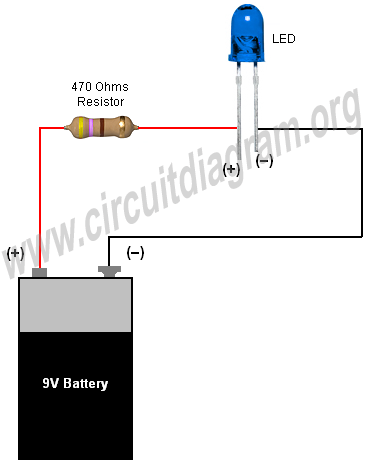 Rangkaian LED paling dasar tidak lebih dari tiga komponen sederhana yaitu baterai, resistor sebegai penahan arus dan tentunya LED. Resistor berfungsi untuk menyesuaikan arus yang mengalir ke LED, karena jika LED dihubungkan secara langsung ke baterai dapat mengakibatkan LED cepat rusak.