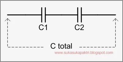 Misal C1 100uF dan C2 10uF. Maka kapasitas total dapat digitung sebagai berikut.