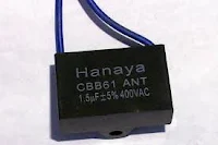 Dari keluhan itu saya langsung berfikiran kapasitornya rusak dan harus diganti. Saya langsung membeli kapasitor yang sama yaitu 1,5uF dan langsung saya pasang. Namun setelah dinyalakan, kipas tetap tidak berputar. Wah... kok gak ada perubahan ya. Akhirnya saya perhatikan kipas sambil identifikasi dan iseng memutar baling-baling kipas dengan jari tapi baling-baling terasa berat saat saya putar. Oh... ternyata motornya agak seret.